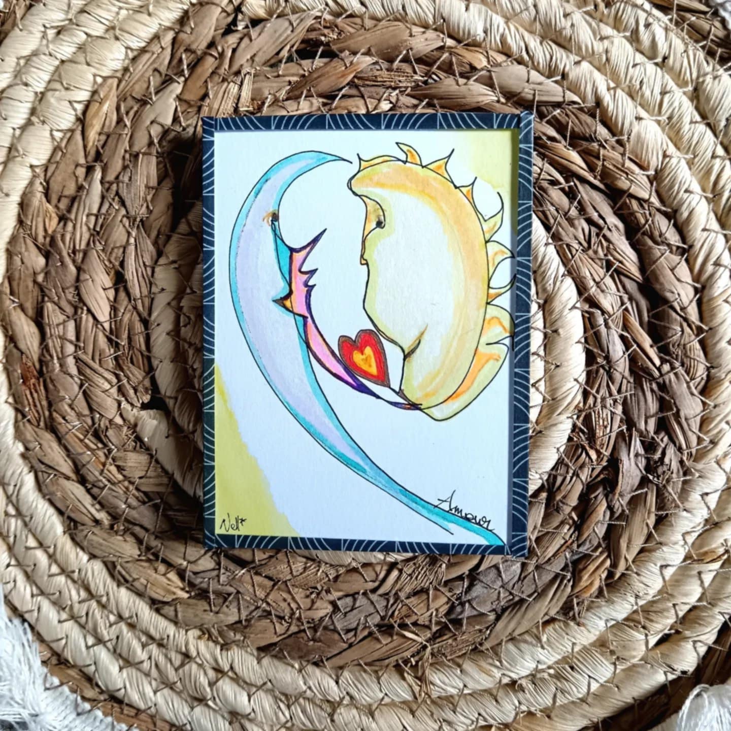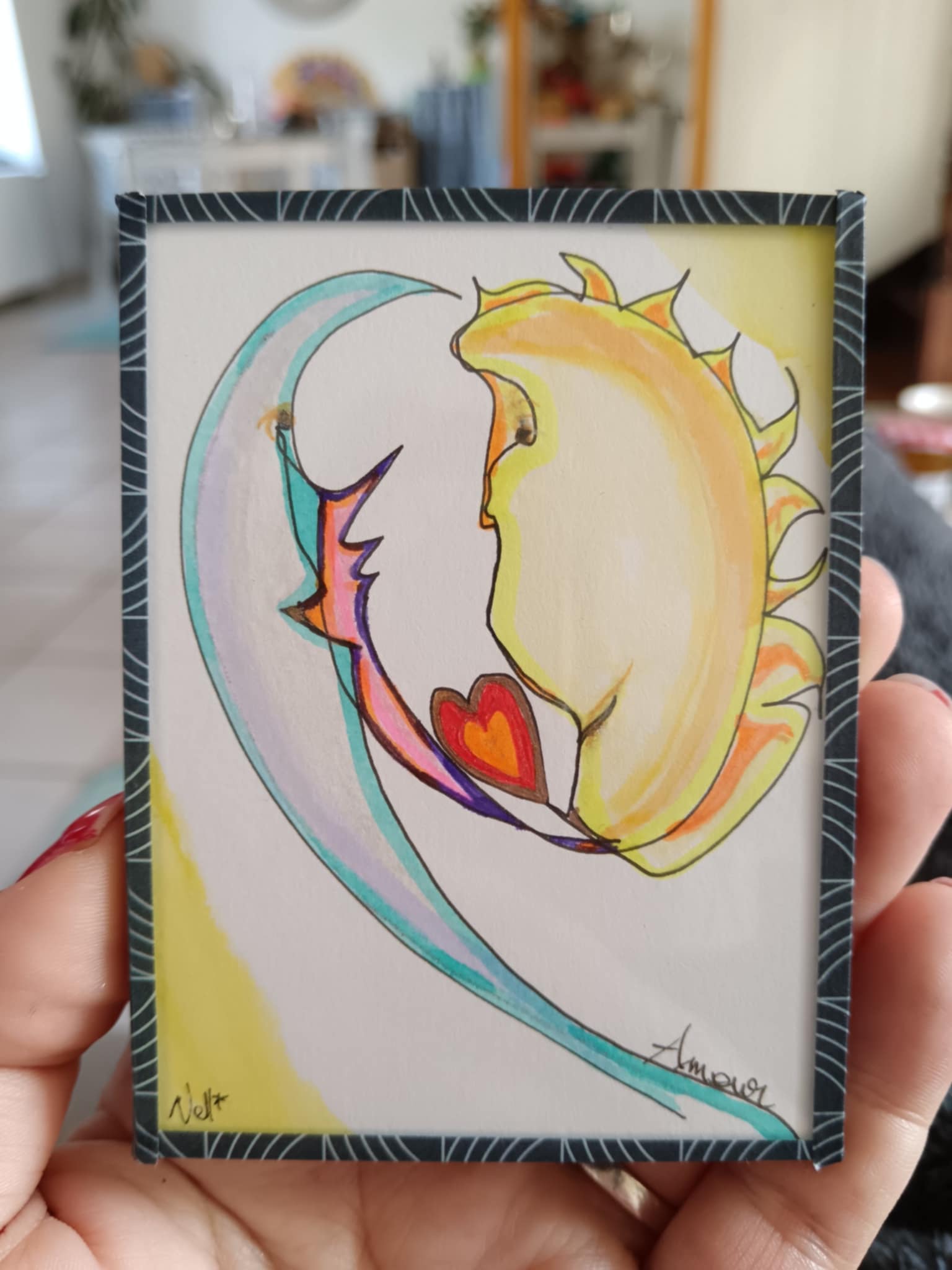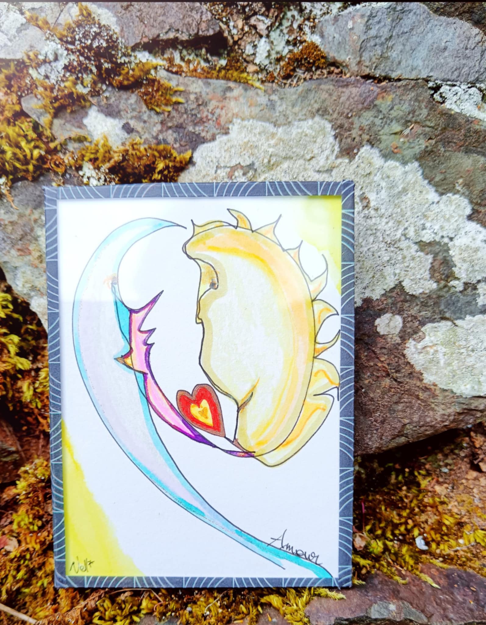 Ce mini-cadre unique est une œuvre intuitive entièrement canalisée, réalisée à la main avec une écriture vibratoire et spontanée. Chaque dessin est une carte magique, porteuse d’une énergie subtile qui reconnecte à l’enfant intérieur, celui qui ressent, qui rêve et qui guérit.