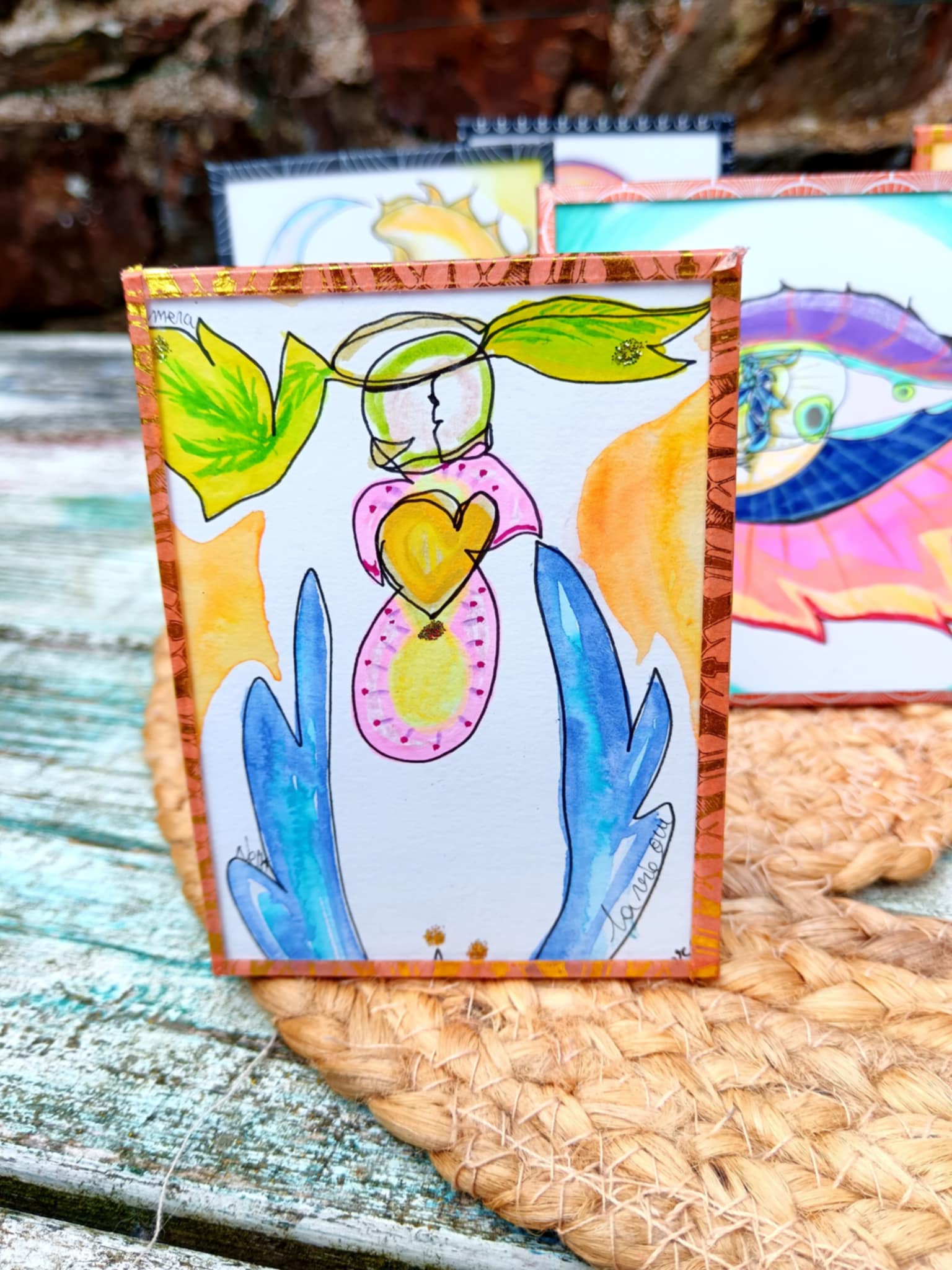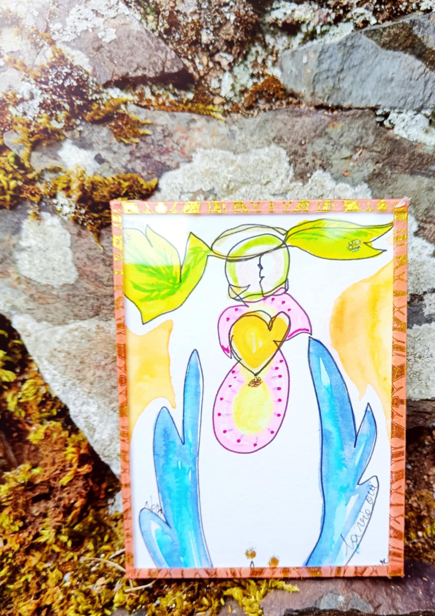Ce mini-cadre unique est une œuvre intuitive entièrement canalisée, réalisée à la main avec une écriture vibratoire et spontanée. Chaque dessin est une carte magique, porteuse d’une énergie subtile qui reconnecte à l’enfant intérieur, celui qui ressent, qui rêve et qui guérit.